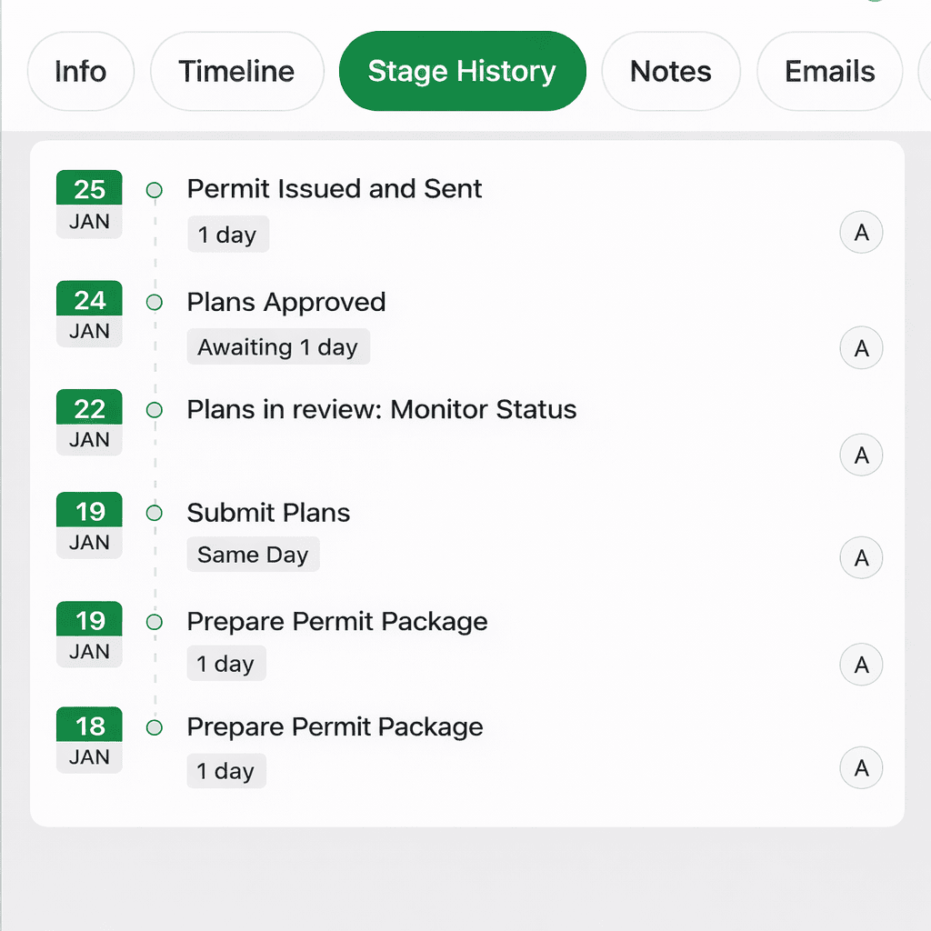 Every permit we manage is logged with critical milestones: submission dates, estimated review timelines, approval status, required forms, and upcoming inspections. All on a convenient app you’re never left guessing. Whether you’re juggling one project or ten, PermitVault keeps everything organized, accessible, and on schedule — so you can build with confidence and stay ahead of delays.